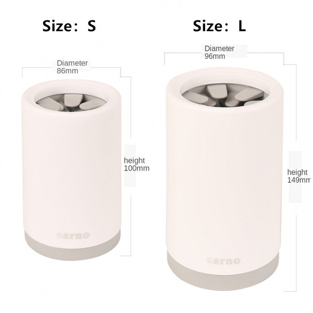 The unique jar-cup shape of the Pet Foot Washer makes it easy to grip and transport for use when out and about. After use, just rinse with water for fast reusability - no mess! The Pet Foot Washer works wonders on mud, dirt , and sand caught between claws, so you can keep your pet's paws feeling healthy and clean wherever you go. Plus, this great product is suitable for small or large dogs as well as cats, so you don't have to worry anymore about their soiling floors at home or in public places.