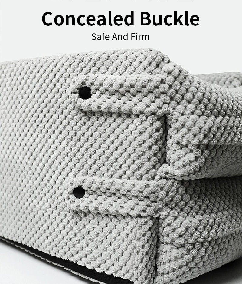 The "Pet Safety Seat" is a portable and secure car seat designed specifically for small dogs and cats. It provides a safe and comfortable space for pets to travel in cars. The pet car seat is made from washable materials, allowing for easy cleaning and maintenance. It can be washed by hand or machine, but high heat drying should be avoided to preserve the material's integrity. The Pet Safety Seat is a practical solution for pet owners who want to ensure the safety and comfort of their small dogs and cats during car travel. It provides a secure space for pets while minimizing the impact of car motion and offering easy access for pets to enter and exit the seat.
